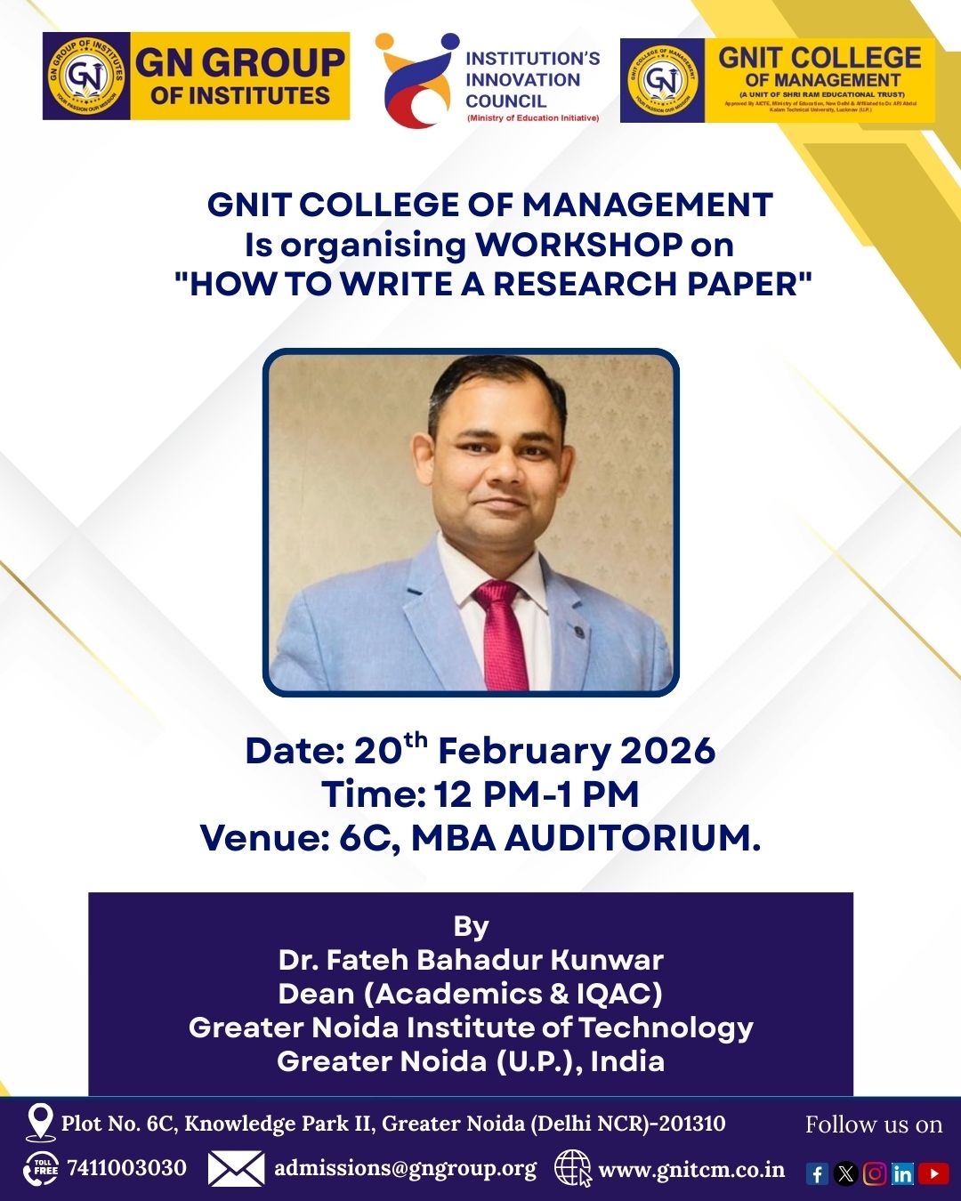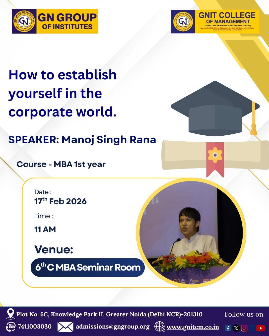 | 3 | GNIT College of Management recently organized an insightful guest lecture on 'The Future of Leadership with Emotional Intelligence,' led by Mr. Devansh Raghav, CTO at JSKD Infotech Pvt. Ltd. | Click Here |