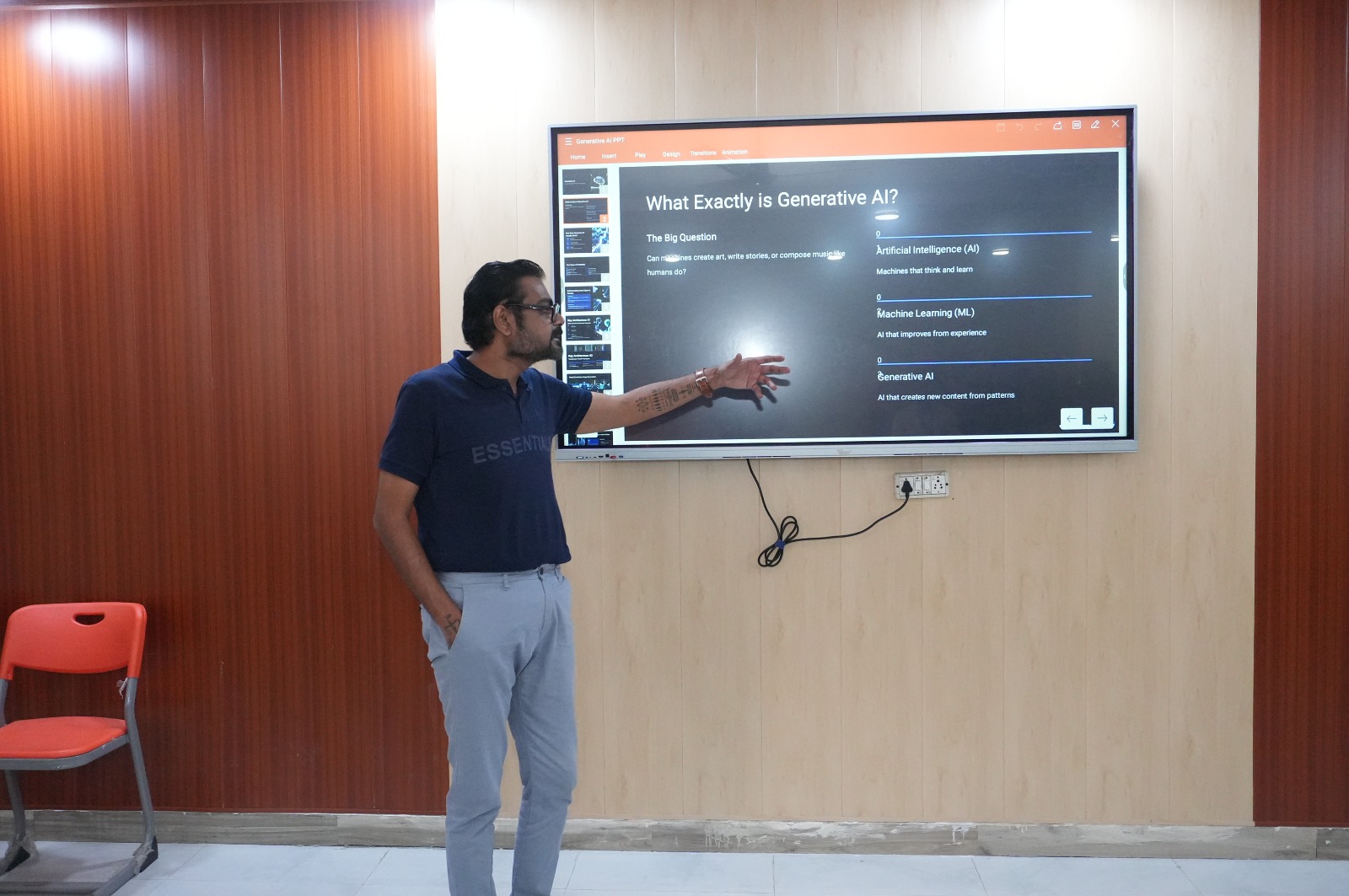 The workshop was facilitated by Data scientist Mr.Ashutosh Hiskiel, from DUCAT School of AI, who shared valuable insights on the evolution of AI and the rise of Generative AI models. The speaker explained how generative AI systems are capable of creating new content—including text, images, audio, videos, and code—by learning patterns from large datasets. Popular models such as Chat GPT, DALL-E, Mid Journey, Gemini, Claude, Copilot, Alpha Code, and Stable Diffusion were discussed.